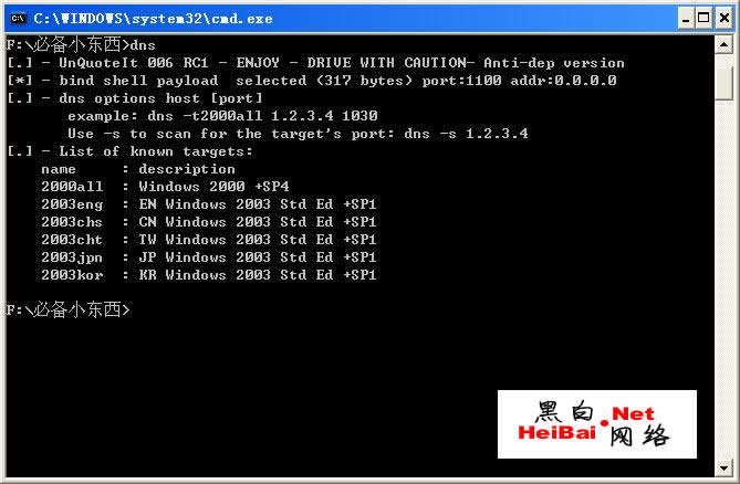 这就是传说中的利用工具,可以通杀2000SEVER,2003SEVER系统,另外还具备了扫描功能! 先用它来对主机进行扫描: 在我们的命令行下输入:“dns –s 目标IP地址”