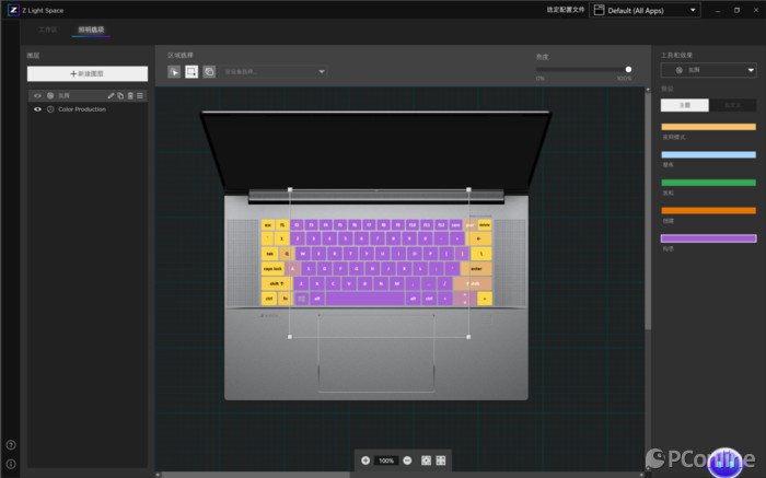 键盘方面,它采纳高级RGB键盘, 能够在ZLightSpace中进行调节测试,在光线 比较暗的环境中,也能让消费者清楚地看清按键, 保障高效内容输入 。防泼溅设计,幸免意外状况对电脑内的数据造成损失 。 占有大面积触控板,移动办公场景下带来媲美鼠标的体验 。