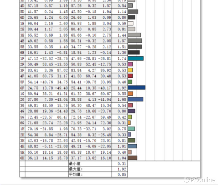 色准方面,它 体现也是相当出众,DleltaE最大值1.92, 均匀值0.85( 标准≤2,越小越好) 。