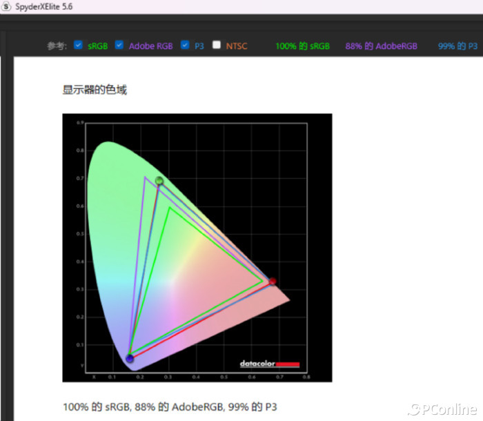 作为工作站定位的笔记本,战99Studio的屏幕素养相当高,配有HPDreamColor 。通过红蜘蛛实际测试来看,其 占有100%sRGB、99%P3色域 。