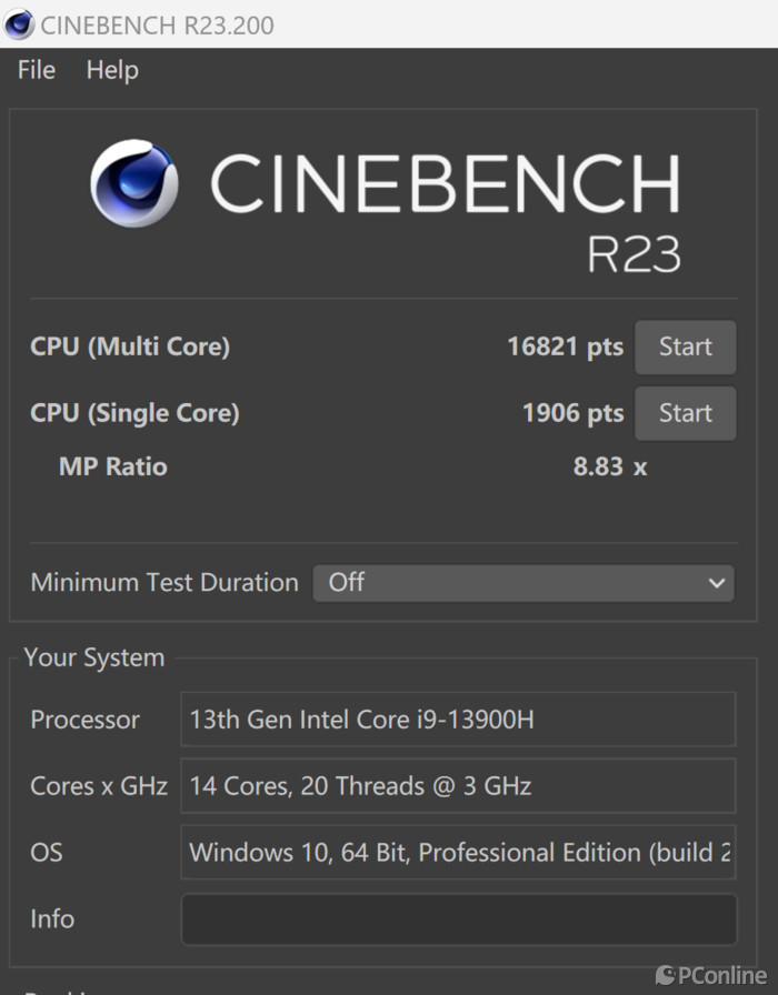 在性能 体现上,第13代英特尔酷睿i9-13900H在CINEBENCHR23图像渲染测试中,多线程得分16821pts,单核心得分1906pts 。 存在较强的运算性能, 彻底 能够胜任Photoshop、Illustrator、InDesign等软件进行复杂的图像 解决操作 。