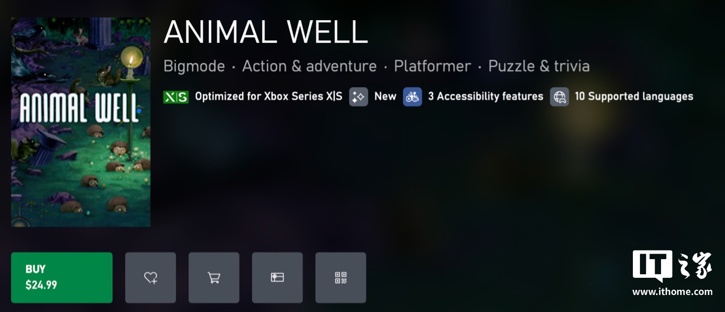10 月 18 日 信息,在微软今天凌晨 举办的新一轮?Xbox?合作 搭档公布会上,微软联合开发者比利?巴索(Billy Basso) 宣告独立游戏《动物井(Animal Well)》即日起登陆?Xbox?平台,售 24.99 美元(备注:目前约 178 元人民币),附游戏地址 。