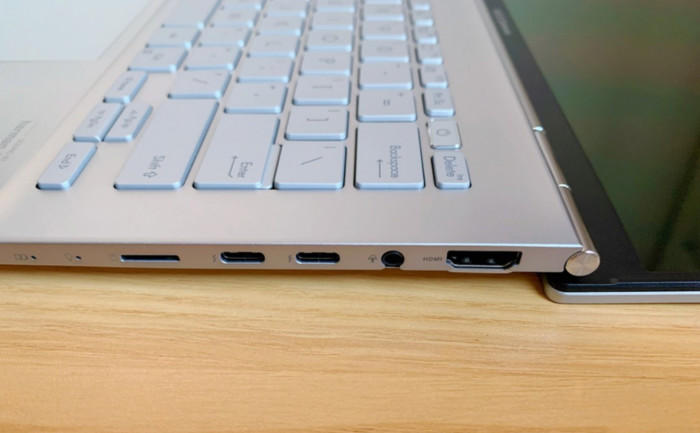 两侧的接口配置也十分充足,右侧是全 性能雷电4、HDMI2.1TMDS、MicroSD读卡器、耳机接口,USB-A接口在左侧,大多状况下我都不需求再额外携带拓展坞 。