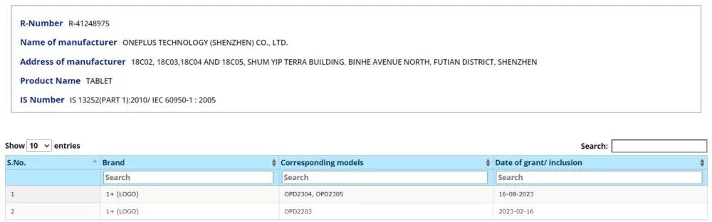9 月 4 日 信息,一加旗下两个新型号 OPD2304 和 OPD2305 现已通过印度 BIS 认证,并且这台型号为 OPD2304 的机型也已经浮现在了一加论坛上,名称显示为“OnePlus Pad Go” 。