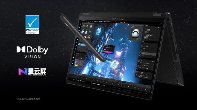 ROG幻13搭配一块13.4英寸可翻转可触控的星云屏,16:10的比例相比 通例16:9不只造价更好, 获得的视觉体验也是更好,IPS广视角相比上一代幻13屏占比 遍及了85%,沉醉感更出色 。屏幕规格2560*1600的2.5K高分辩率屏幕,配合165Hz的高刷,PPI上有更大优势的同时做到了3ms的 迅速响应 工夫,100%DCI-P3专业广色域无论对一般消费者娱乐还是专业消费者生产力,都是极有协助的,配合上4096级的压感触控屏,让ROG幻13的 使用多添加了一个维度,专业绘画也是信手拈来 。