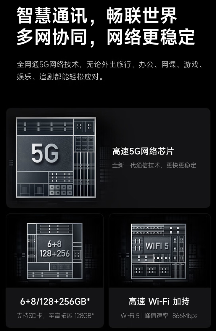 此外,系列平板电脑装备 13MP+8MP 后置摄像头,重?500?克,内置 4 个 8Q 1W 带腔体喇叭, 支撑 SD 卡 扩充(至高拓展 128GB)并装备?7200?毫安时电池 。