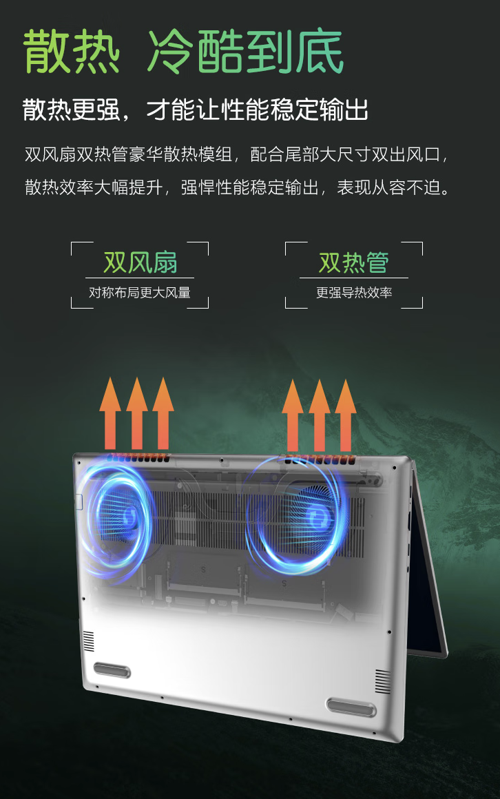 该机搭载8核心12线程英特尔酷睿i5-13420H 解决器,内置16GB DDR5 RAM和1TB PCIe 4.0 SSD,采纳双铜管双风扇散热设计 。