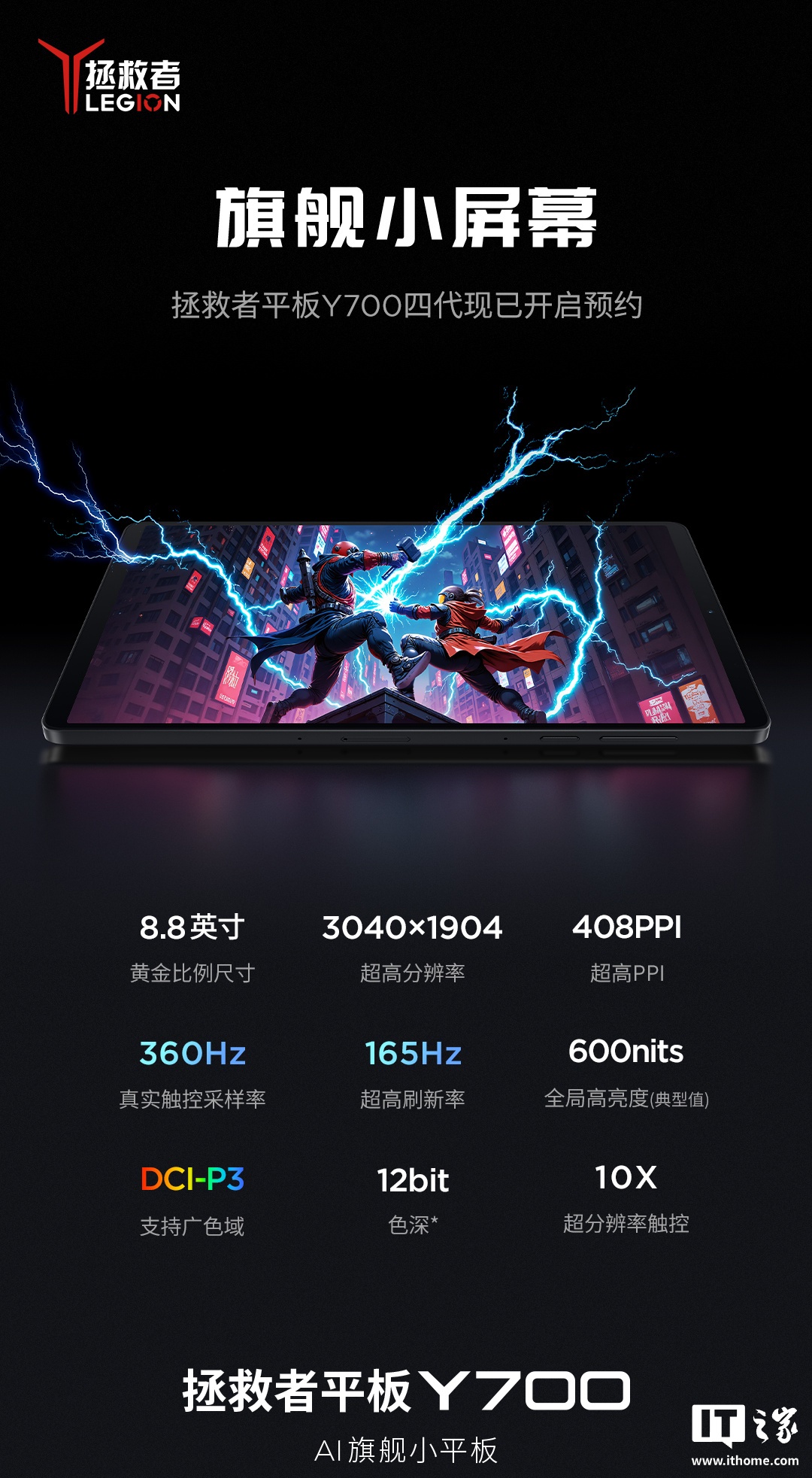 联想拯救者平板 Y700 四代预热:骁龙 8 至尊版处理器、LPDDR5X Ultra+UFS 4.1 组合 |