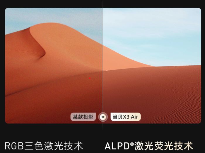 当贝X3Air采纳 通过特别技术 解决的APLD激光光源,与三色纯激光不同,ALPD激光更接近自然界中的自然光谱,发出的光天生不会产生散斑,透过视网膜的光功率更低,更方便被眼球 承受,自然健康 。假如进行长期观影也不会轻易感到视觉疲乏,贴心呵护视力, 相符人体的视觉偏好 。不只如此,当贝已获国际爱眼认证,产品采纳的APLD激光荧光技术还能让画质更加 清洁通透无散斑 。 色彩 实在、精确度高、抗光性好、画面 清新无彩边,在呵护视力的同时带来更好的视觉体验 。