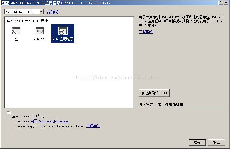 ASP.NET Core MVC入门教程第一节课,具体内容如下 1.开始环境 visual studio 2017 社区版或其他版本 。安装时勾选“Web和云”组中的“ASP.NET及网页开发”项和“其他工具”组中的".NET Core平台开发“项 。 2.创建一个网页应用 (1)在 Visual Studio中, select 文件 >新建 >项目 。 (2) 在”新项目“对话框中的左面板中,点击”.NET Core“,在中间的面板中,点击 ”ASP.NET Core Web 应用程序 (.NET Core)“,将项目命名为”MVCUserInfo",点击”确定“钮,如下图:
