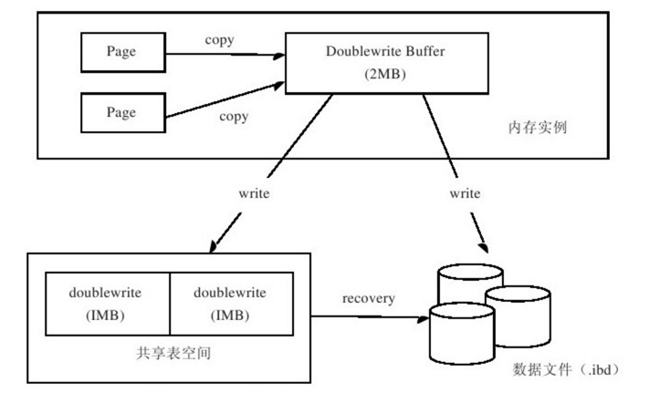 seg size显示了当前插入缓冲的大小为2*16KB,free list len代表了空闲列表的长度,size代表了已经合并记录页的数量 。 下面一行可能是我们真正关心的,因为它显示了提高性能了 。inserts代表插入的记录数,merged recs代表合并的页的数量,merges代表合并的次数 。 merged recs:merges大约为3:1,代表插入缓冲将对于非聚集索引页的IO请求大约降低了3倍 。 问题: 目前插入缓冲存在一个问题是,在写密集的情况下,插入缓冲会占用过多的缓冲池内存,默认情况下最大可以占用1/2的缓冲池内存 。Percona已发布一些patch来修正插入缓冲占用太多缓冲池内存的问题,具体的可以到http://www.percona.com/percona-lab.html查找 。简单来说,修改IBUF_POOL_SIZE_PER_MAX_SIZE就可以对插入缓冲的大小进行控制,例如,将IBUF_POOL_SIZE_PER_MAX_SIZE改为3,则最大只能使用1/3的缓冲池内存 。 两次写 如果说插入缓冲带给InnoDB存储引擎的是性能,那么两次写带给InnoDB存储引擎的是数据的可靠性 。当数据库宕机时,可能发生数据库正在写一个页面,而这个页只写了一部分(比如16K的页,只写前4K的页)的情况,我们称之为部分写失效(partial page write) 。在InnoDB存储引擎未使用double write技术前,曾出现过因为部分写失效而导致数据丢失的情况 。 有人也许会想,如果发生写失效,可以通过重做日志进行恢复 。这是一个办法 。但是必须清楚的是,重做日志中记录的是对页的物理操作,如偏移量800,写'aaaa'记录 。如果这个页本身已经损坏,再对其进行重做是没有意义的 。这就是说,在应用(apply)重做日志前,我们需要一个页的副本,当写入失效发生时,先通过页的副本来还原该页,再进行重做,这就是doublewrite 。 InnoDB存储引擎doublewrite的体系架构如图2-4所示