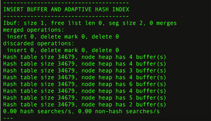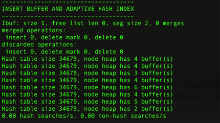 现在可以看到自适应哈希索引的使用信息了,包括自适应哈希索引的大小、使用情况、每秒使用自适应哈希索引搜索的情况 。值得注意的是,哈希索引只能用来搜索等值的查询,如select * from table where index_col='xxx',而对于其他查找类型,如范围查找,是不能使用的 。因此,这里出现了non-hash searches/s的情况 。用hash searches:non-hash searches命令可以大概了解使用哈希索引后的效率 。 由于自适应哈希索引是由InnoDB存储引擎控制的,所以这里的信息只供我们参考 。不过我们可以通过参数innodb_adaptive_hash_index来禁用或启动此特性,默认为开启 。 以上这篇InnoDB的关键特性-插入缓存,两次写,自适应hash索引详解就是小编分享给大家的全部内容了,希望能给大家一个参考,也希望大家多多支持脚本之家 。 |