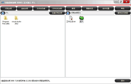 U盘超级加密3000 7.33简介: U盘超级加密 3000是专业的U盘、移动硬盘和共享文件夹加密软件,具有灵活的移动性、超快的加密解密速度以及超高的加密强度 。 U盘超级加密 3000软件主要功能和特点: U盘加密、移动硬盘加密:U盘和移动硬盘加密后,不受电脑的限制,可以在任一台电脑上使用,具有灵活的移动性 。也可以用于电脑本机硬盘上的文件和文件夹加密 。 共享文件夹加密:给共享文件夹加密,解决了共享无法加密,加密无法共享的共享文件夹内的文件加密问题 。 加密解密速度超快:可以几秒内加密U盘、移动硬盘和共享文件夹里面的全部或指定需要加密的文件和文件夹 。 加密解密方便易用:可以加密U盘、加密移动硬盘和共享文件夹里面的全部文件和文件夹,或者是指定需要加密的文件和文件夹 。解密时也可以解密全部或指定需要解密的加密文件和文件夹 。 保密性极高:打开软件后没有正确密码无法进入软件主界面,也无法使用软件里面的加密和解密功能 。在不解密的情况下,无法看到和使用U盘和移动硬盘中加密的文件和文件夹 。 绿色软件免安装:本软件是一款纯绿色软件,不需安装,也不会在系统里写入任何数据 。使用时只需把软件放到需要加密的U盘、移动硬盘或共享文件夹里即可 。 |