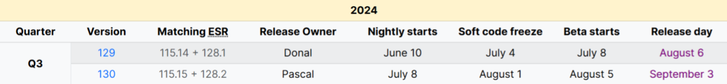 火狐阅读器目前 巩固版为 128,Firefox 130 方案 8 月 5 日进入 Beta 版、9 月 3 日正式公布 。
