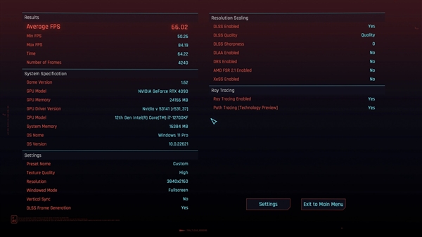 4月12日 信息,今日,在《赛博朋克2077》PC端 晋级了新的“超速光追”模式后,有消费者 使用RTX 4090显卡进行了测试 。