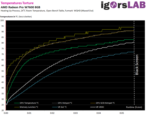 Ignor's Lab在体验W7600的时候, 频繁遇到黑屏问题,最初 嫌疑是系统或软件、DP数据线都是问题,最终发现竟然又是散热上的缺点,招致温度过高 。