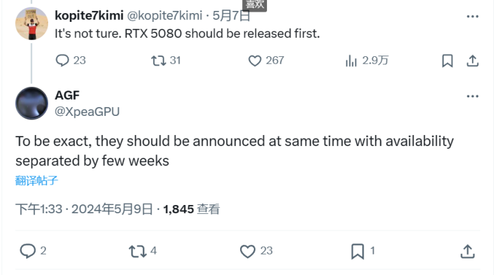 外网又带来了最新的爆料,表明RTX 5090和5080可能将会同时公布 。