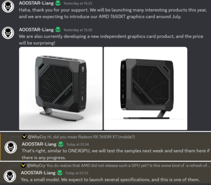 AMD将发RX 7650M XT移动显卡 天钡新移动显卡坞首发 |