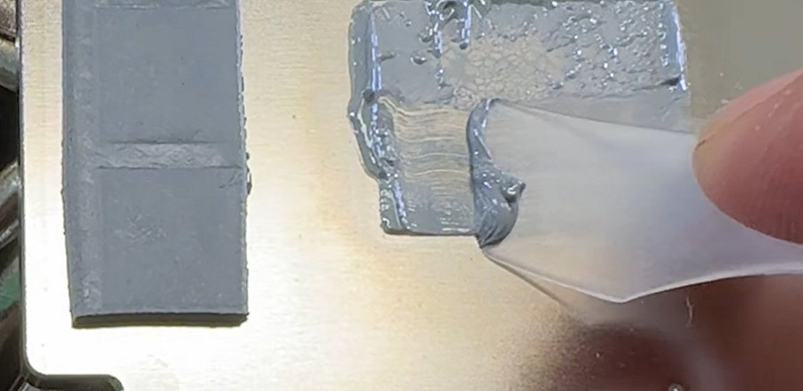 显微镜 视察发现,导热膏中含有一种会迅速挥发的油性液体 。问题在于,这种液体并不在导热膏内部,而是飘荡在导热膏中直径达 16 微米的 硕大氧化铝颗粒中间 。这些氧化铝颗粒 固然起到了 晋升初始热导率的作用,但油性液体的挥发招致导热膏逐步失效, 构成 类似隔热层 。