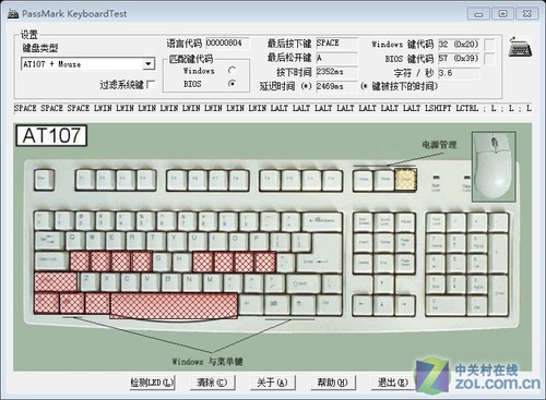 PLU 87键盘的键位冲突设计较为一般,即但是采用PS/2接口,PLU 87键盘也仅能实现最多9颗按键同时触发,相比于前面几款键盘各种冲突全远的设计,PLU 87键盘表现一般。