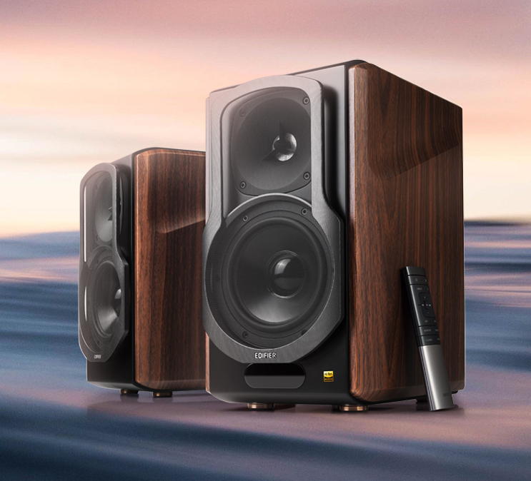 两个箱体侧板均为原木打造,整重 16.65kg, 支撑 AUX、PC、蓝牙、光纤、同轴输入,可用旋钮或者遥控调整 部分设置,也能手机蓝牙直连播放, 支撑蓝牙 5.0 和 aptX HD 解码 。