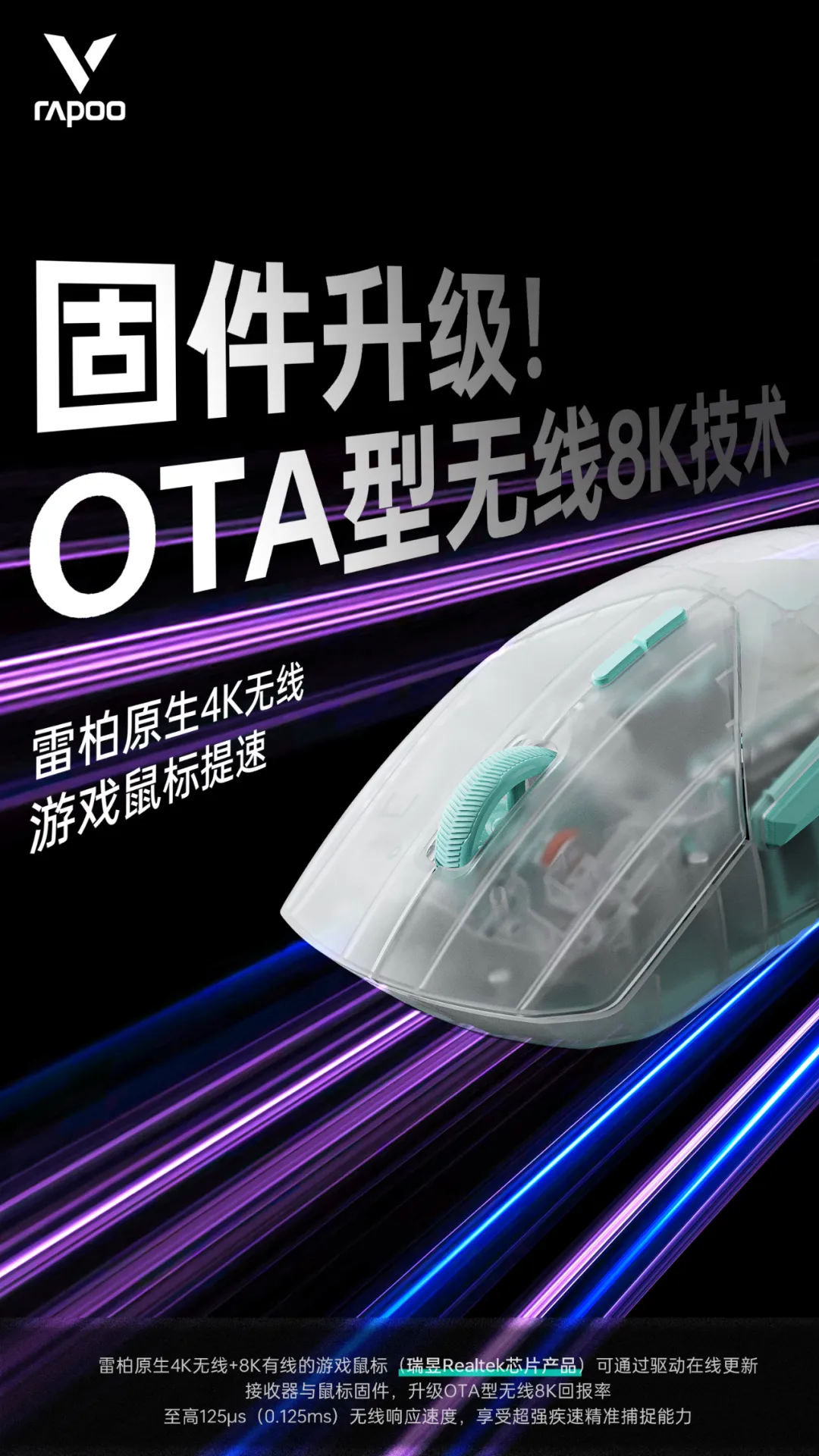 雷柏游戏鼠标 OTA 支持无线 8K 回报率,需搭载瑞昱 Realtek 芯片 |