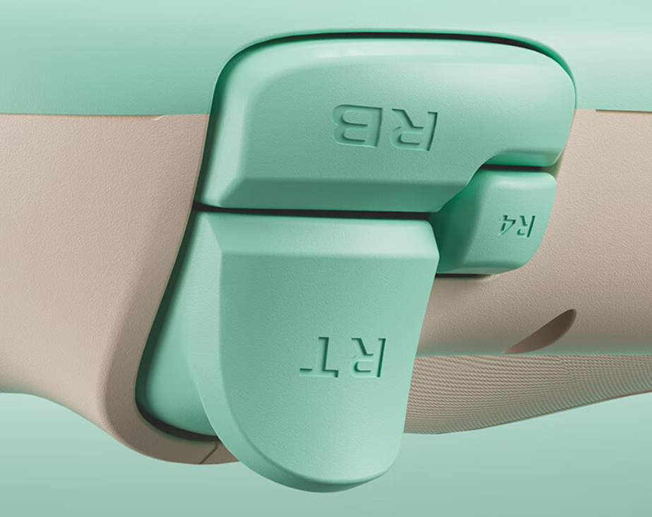 手柄 支撑 1000Hz 有线 / 无线回报率,顶部肩键旁还多了一个自定义“小肩键”,采纳杠杆式 构造设计,轻触 + 硅胶用料;配有轻触 + 硅胶转轴十字键、霍尔线性扳机、霍尔摇杆 。