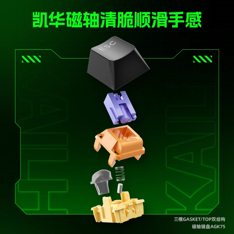 蚂蚁电竞为 AGK75 装备了凯华磁轴 。该轴体为全 POM 材质,敲击音效为 HiFi 麻将音, 支撑扳机 模仿 性能,IT之家 整顿其参数如下:
