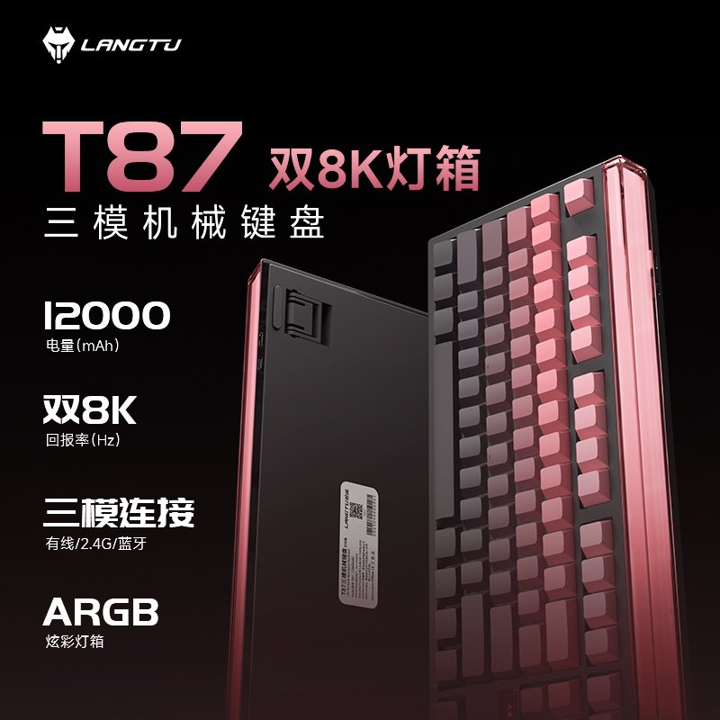 12 月 8 日 信息,狼途 LANGTU 今天正式推出了 T87 系列 TKL 配列三模衔接机械轴体键盘 。该系列键盘后端包含 3D 立体灯箱,可营建更为 浓烈的游戏电竞 空气 。