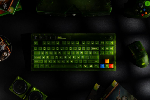 八位堂Retro87 X版 绿透机械键盘,搭载经典的复古旧式机舱操纵台,宛然将消费者 霎时带回到那个 充斥激情与 妄想的年代,给消费者满满的实操感 。双层水晶方向键和呼出Game Bar的 性能键,每一处细节都深深致敬了Xbox游戏元素 。半透水晶键帽+UV哑光涂层,触感似沙似雾,搭配RGB复古灯效,让人宛然置身于迷雾之中,执着地寻找着 真谛的 光辉,外观颜值气质出色,为你桌面增加一抹亮色 。