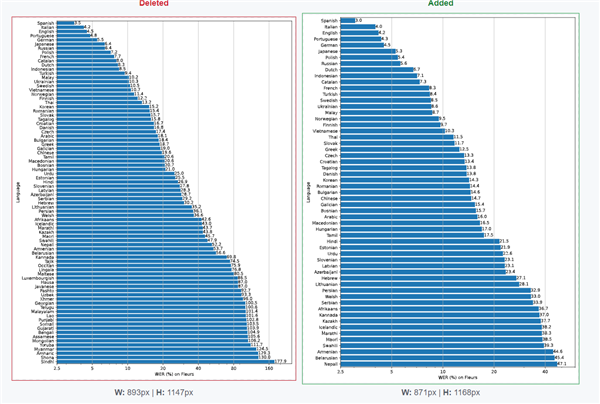 不过不同语言的精确率差异不小,Whisper large-v2模型在 鉴别西语、英语、意大利语、德语等语言单词 舛误率都能操纵在5%以内,这种语言转文字之后 只有求消费者 容易 批改就好 。