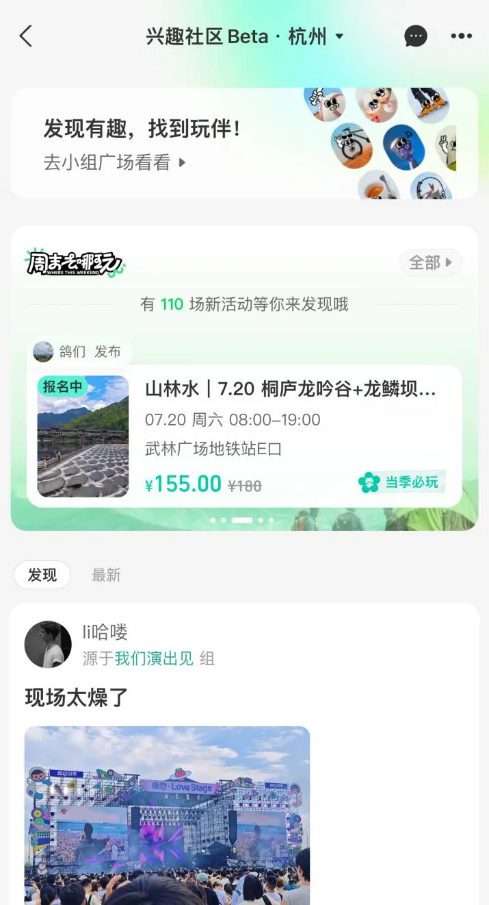 上一年8月, 领取宝推出“灯火”平台,正式推动流量变现 。今年年头, 领取宝还内测了一个名为“兴趣社区”的社交 性能(当前只 支撑杭州),重要为消费者提供基于兴趣、抢手 运动的小组社交, 类似豆瓣的同城 运动 。