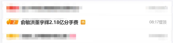 7月26日 信息,微博话题“俞敏洪董宇辉2.18亿 离别费”冲上热搜榜第二名 。