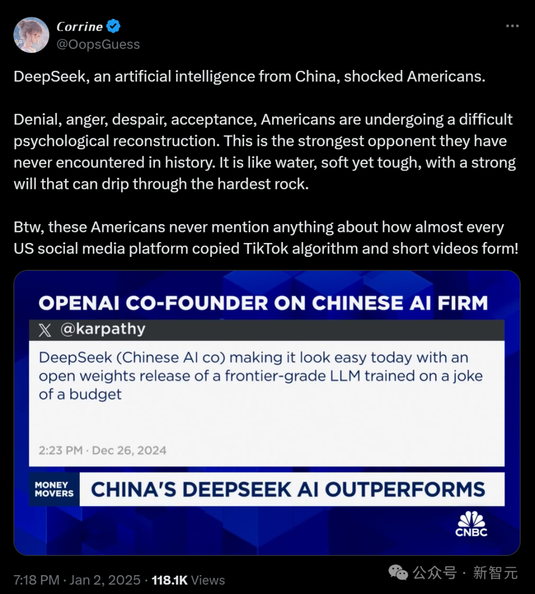 DeepSeek, 实在地给了美国人亿点点「震撼」 。