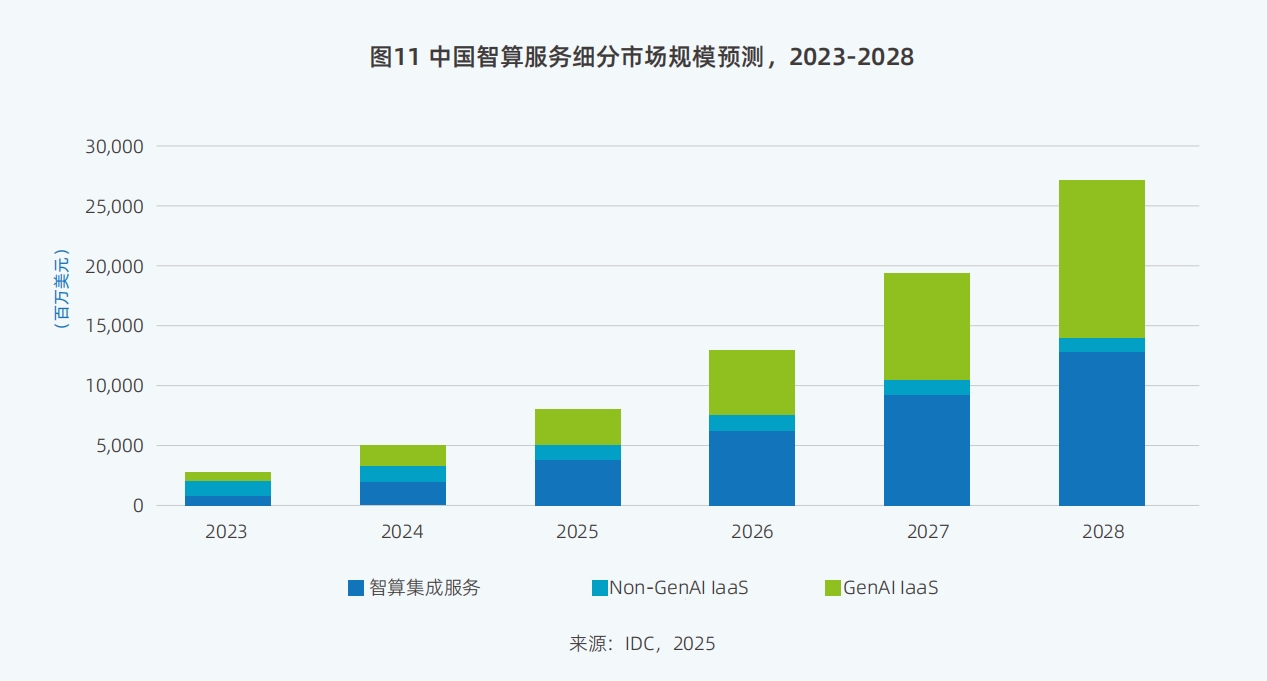 IDC数据显示,2024年中国智算服务市场整体规模达到50亿美元,2025年将增至79.5亿美元,2023-2028年五年年复合增进率达57.3% 。