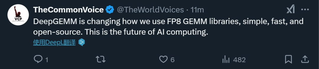 还有人评介说,「DeepGEMM 正在转变我们 使用 FP8 GEMM 库的 模式,它简洁、 快捷且开源 。这正是 AI 计算的 将来 。」