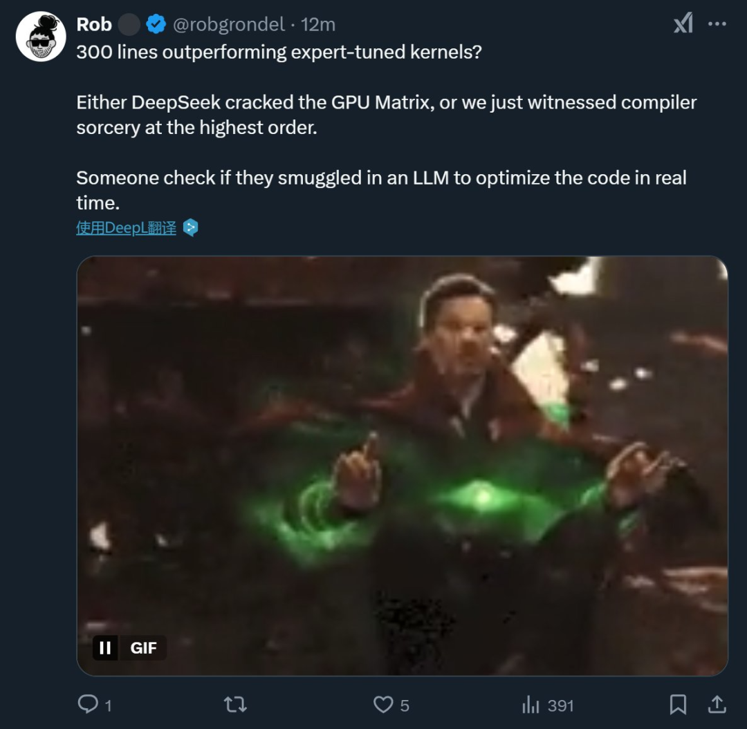 除了性能,「300 行代码的性能 超过了专家调优的内核」同样让不少人感到 惊异,有人认为「要么 DeepSeek 破解了 GPU 矩阵的神秘,要么我们方才见证了最高等级的编译器魔法 。」
