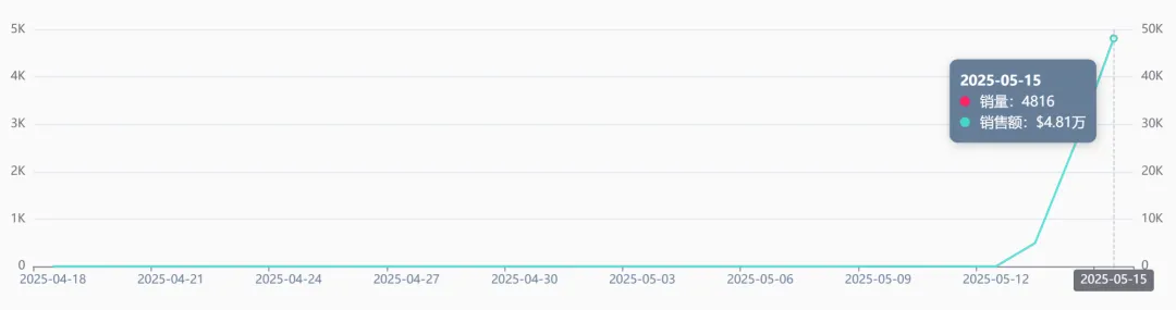 据悉,这款产品是4月11上架的新品,5月15日以单日4816的销售量登顶TikTok Shop美区厨房用品品类的销售量冠军 。