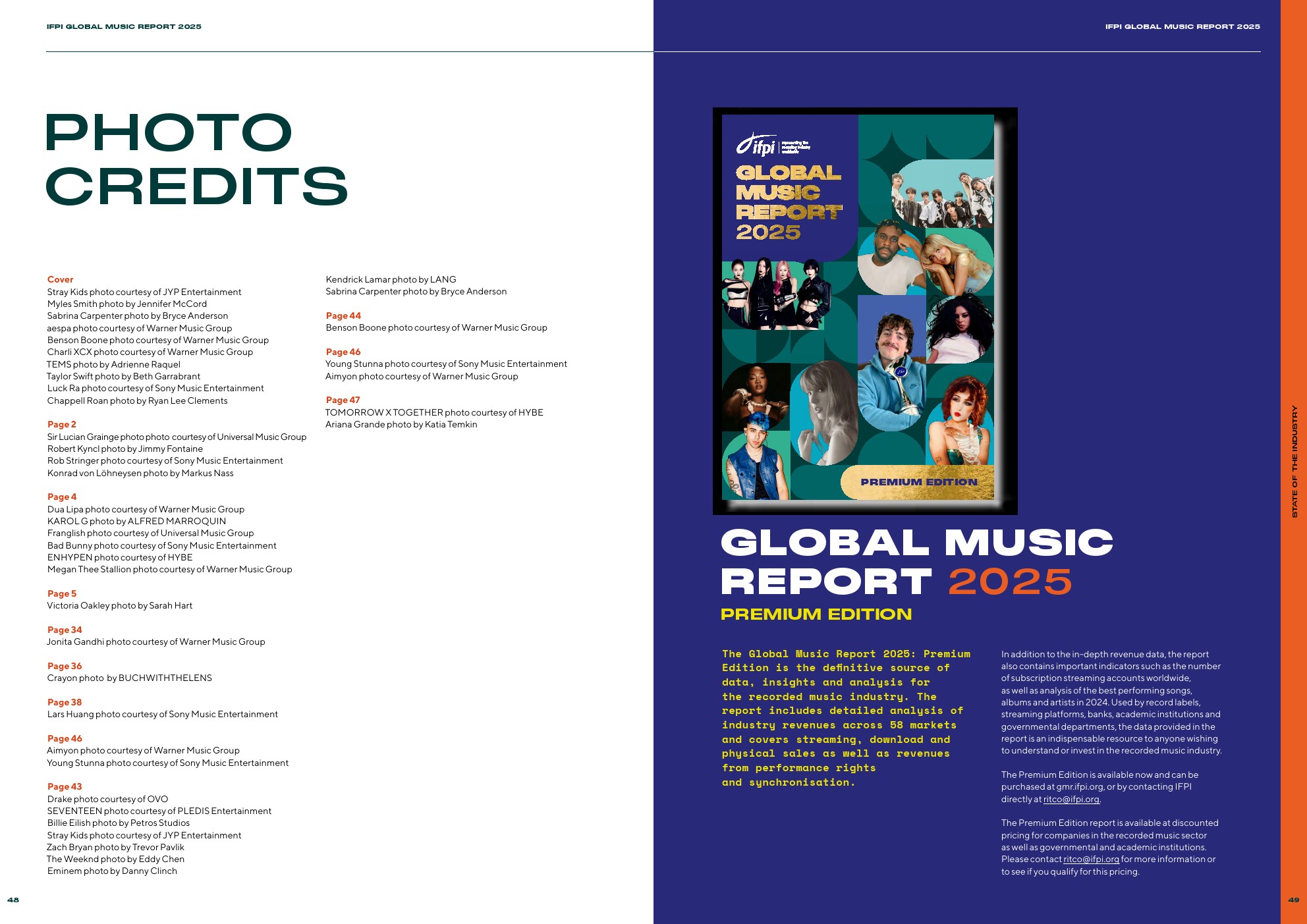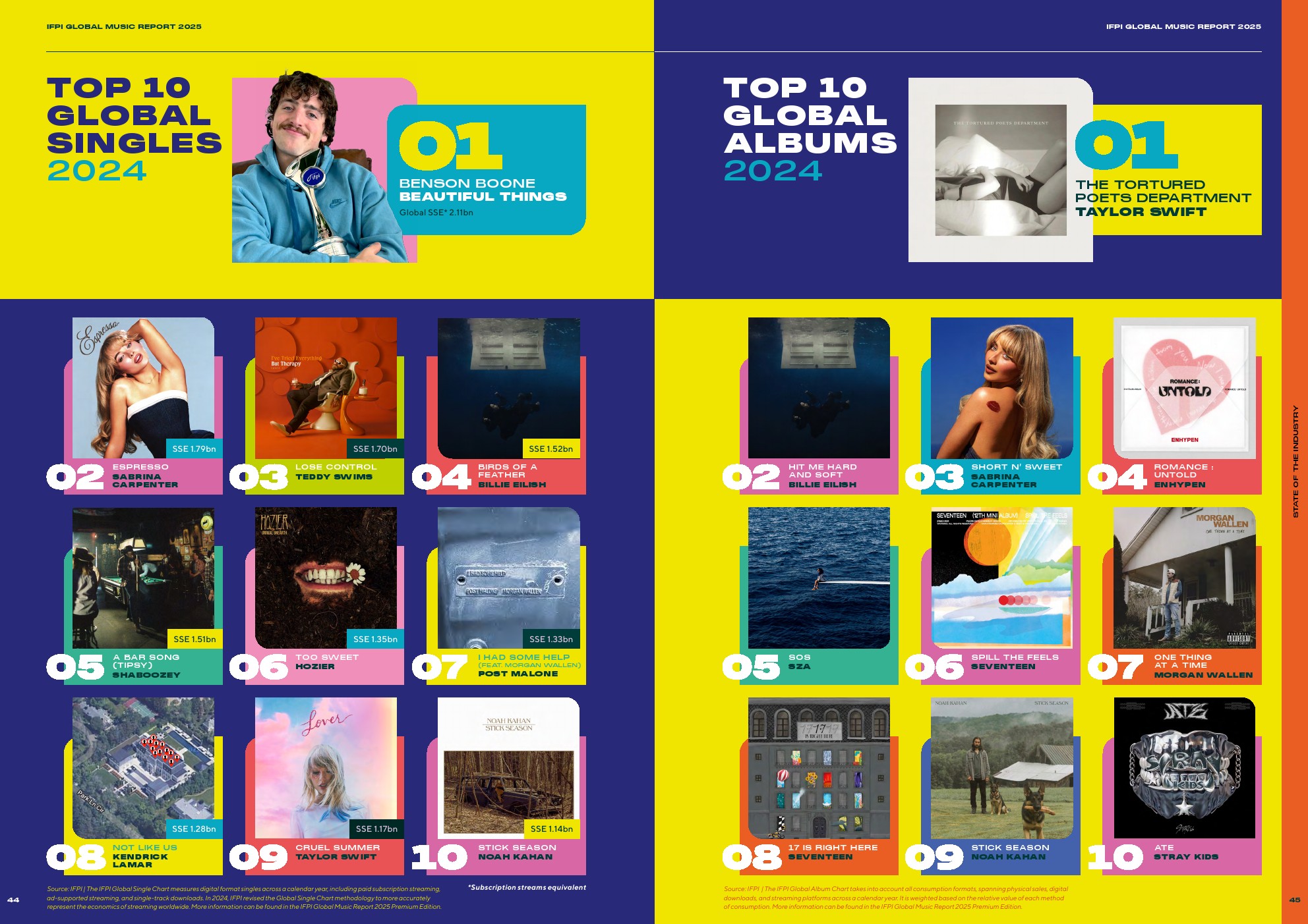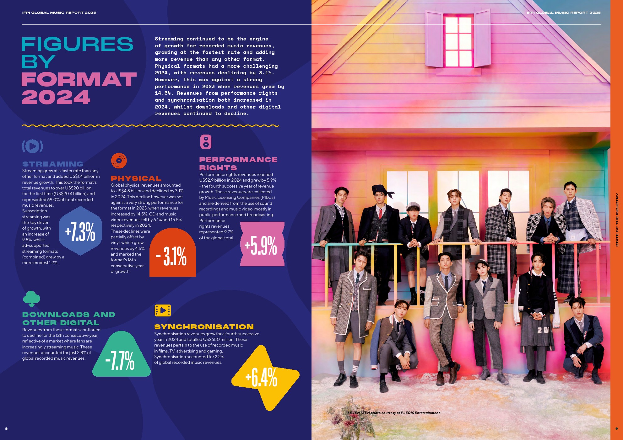 流媒体在寰球规模内接续 风行,首次超过200亿美元(204亿美元) 。2024年,流媒体订阅收入占 寰球录制音乐收入的50%以上,显示出这种模式的延续 风行 。订阅流媒体是增进的重要动力,增进9.5% 。广告 支撑的流媒体增进了1.2% 。